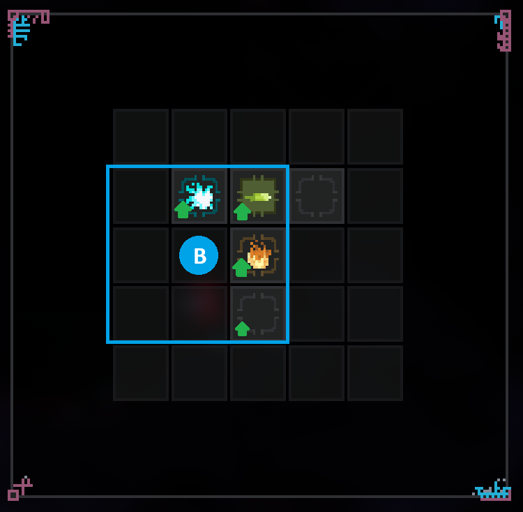 When you fire a weapon, all parts in the power core will activate to generate projectiles, unless it overheats. The trick to build powerful weapons is being clever in placing parts into the grid.